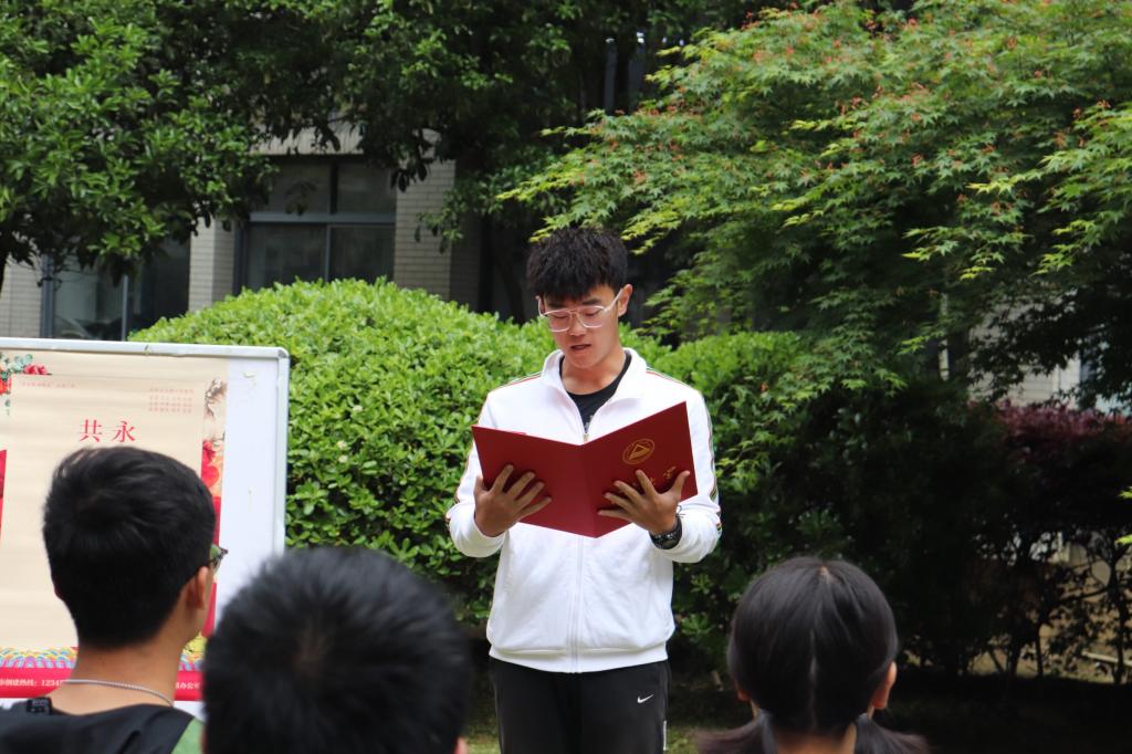 活动通过诵读经典、交流分享的方式,在中华经典著作中追寻理想、坚定信念。诵读会形式丰富,同学们的诵读或豪放、或婉约,或慷慨激昂、或深情款款。《少年中国说》、《共产党宣言》、《忆秦娥娄山关》、《古风·党旗颂》、《七律·长征》等一首首经典诗词,在同学们口中诵读,令人倍感振奋,激励青年人应勇担大任,作新时代的弄潮儿。在交流分享环节,团员青年还就4月19日习近平总书记在清华大学考察时的重要讲话精神进行学习。纺织工程 2018级王傲同学说到,习近平总书记在清华大学考察时表示:党和国家事业发展对高等教育的需要,对科学知识和优秀人才的需要,比以往任何时候都更为迫切。诚然,身在江大,我为国家高等教育的卓越成果愈发自豪;学于纺织,我对纺织行业的蓬勃发展极尽感激。历史的车辙印证着过往奋斗者的血泪,作为纺织学子,我们应当不断加强专业知识的学习,练就过硬本领。