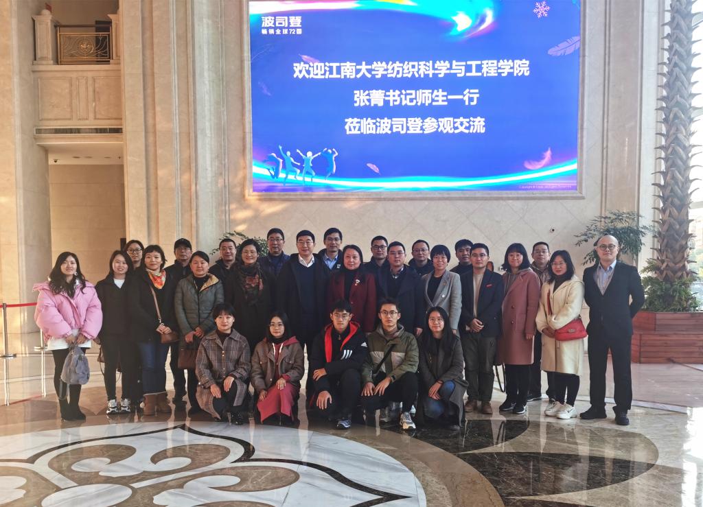 为学习贯彻党的十九届五中全会精神,发挥党建“牛鼻子”效应,推进校企合作“求真育人”课程思政建设。12月4日,纺织科学与工程学院教工行政党支部、2020年度“波司登公益奖助学金”获奖学生代表,赴波司登集团开展主题党日活动。师生一行参观了波司登集团防寒博物馆、党建馆、智能制造工厂、线下直营店,并与集团相关部门负责人座谈交流。纺织科学与工程学院党委书记张菁、党委副书记陈艳君、党委委员徐阳教授,以普通党员身份参加上述活动。波司登集团人力资源总监吴晓明、波司登集团商学院执行院长夏志强、波司登集团招聘副总监王彬彬,陪同参观交流。