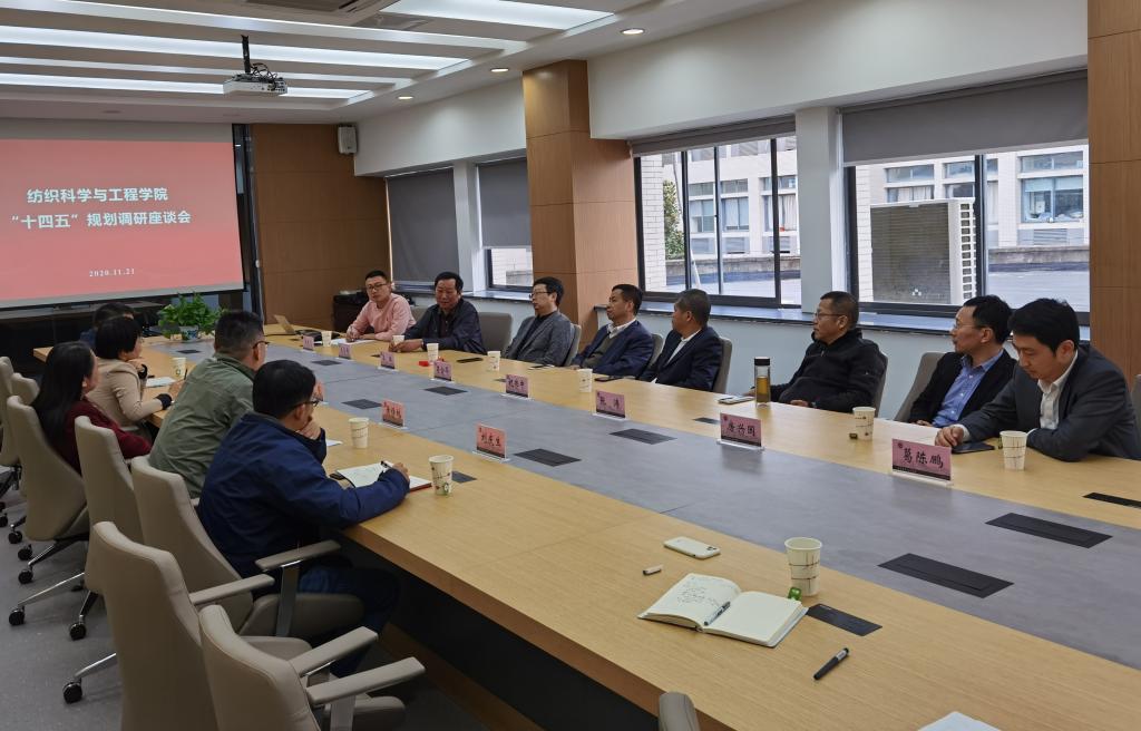 为科学谋划学院“十四五”事业发展,高水平、高质量完成“十四五”规划编制工作,11月21日上午纺织科学与工程学院在纺织楼A306会议室面向纺织企业开展“十四五”规划调研座谈会,总结过去纺织人才培养的经验,分析当前行业形势与前景,共同探讨未来五年纺织人才培养工作。江苏省省属企业外部董事、83级校友蒋金华,苏州江赛纺织科技有限公司董事长、91级校友王洋,79级校友祝伟中,无锡兰翔胶业有限公司总经理、80级校友吴学平,南京海尔曼斯副总经理、83级校友张涛,无锡瑞好联合纺贸有限公司总经理、96级校友房兴国,江苏格罗瑞节能科技有限公司董事长、97级校友葛陈鹏,广州千丝丽纺织品有限公司总经理、98级校友胡茂文,79级校友祝伟中等多位纺织行业企业家出席,纺织科学与工程学院班子成员参加了座谈。