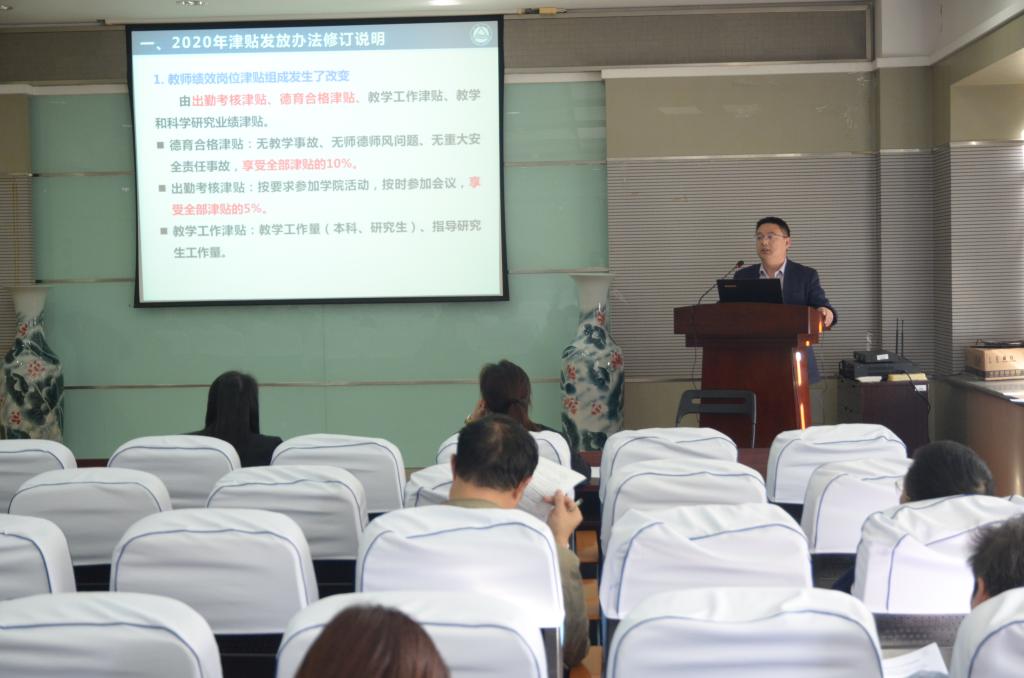 会上,付少海院长对《纺织科学与工程学院2020年度津贴分配方案》(教代会审议稿)作了解读,重点介绍了修订的政策依据、形成过程、适用范围以及2020年度绩效岗位津贴组成变化、教学工作量补贴变化、科研岗考核方案变化等涉及教职工切实利益的其他重要问题,对教职工意见比较集中的问题进行了解释和说明。经过与会代表们的审议与讨论,一致表决通过了分配方案。