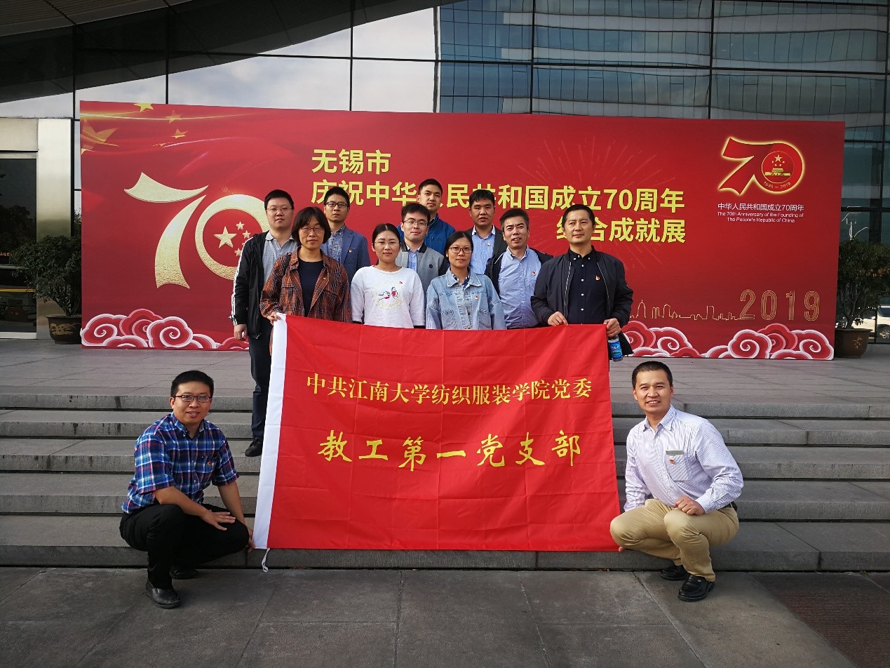 为进一步深入开展“不忘初心、牢记使命”主题教育,结合庆祝新中国成立70周年,按照主题教育的安排部署,10月16日下午,江南大学纺织服装学院教工一支部与“发展规划与重大项目办公室、学术委员会办公室”联合党支部开展了 “践行初心之旅”主题党日活动,赴无锡博物院参观“无锡市庆祝新中国成立70周年综合成就展”。