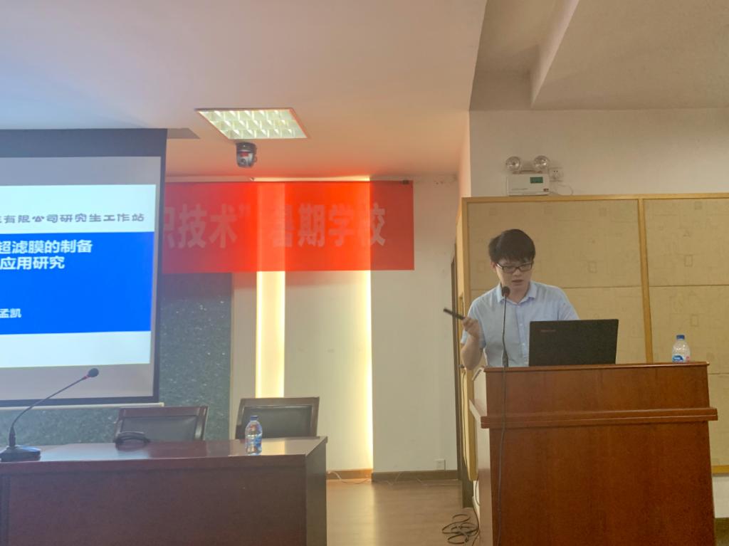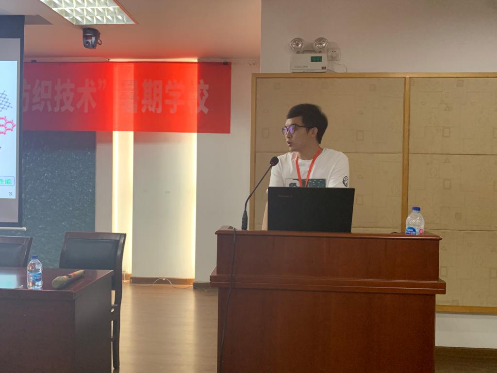 下午2时,纺织服装学院院长助理袁久刚副教授主持研究生学术沙龙,由四位学员进行了学术汇报。首先新疆大学的李天宇同学介绍了深度冷处理对电池以及纤维性能的影响。随后,江南大学的彭虹云汇报了关于二硫化钼/聚丙烯腈阻燃复合材料的制备及性能研究,主要从研究背景、现状以及阶段性研究成果进行了陈述。第三位是苏州大学的朱明星同学,他的主题是纤维管增强型中空纤维超滤膜的制备以及污水处理中的应用研究,该同学提出本次暑期学校正是响应了习近平主席的新发展理念中的绿色发展理念,也提倡大家做个新时代环保人。最后江南大学陈诚同学给大家介绍了一种基于色相可控的超疏水无氟乳胶颜料构筑仿生多彩自清洁胶布,并进行了一系列防水和防污的应用介绍。学员们还通过问答环节交流互动,深入讨论,氛围热烈。