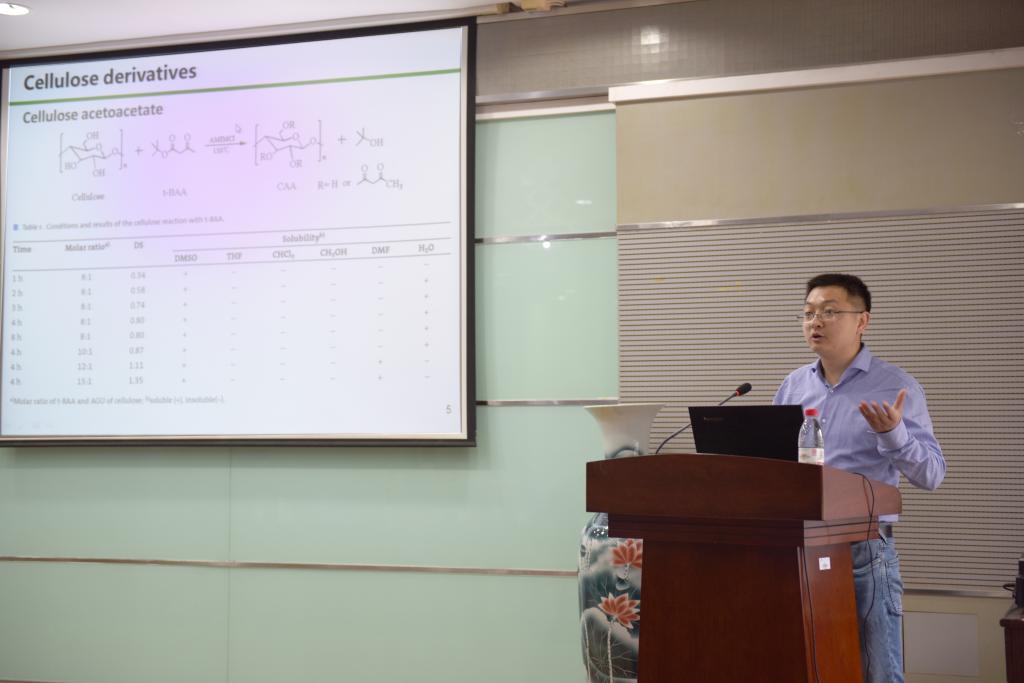 此次“青椒沙龙”包括专题学术报告和学术经历分享两个部分。上午的专题学术报告由付少海院长主持,隋晓峰教授首先以“Preparation, Structures and Multifaceted Applications of Natural Polymers Based Functional Materials”为题,介绍了他在功能高分子材料的设计、合成、表征及应用,包括高分子表面修饰、响应性凝胶和水基高分子乳液的研究和应用;覃小红教授 “纳微纺织纤维集合体的研究进展”的报告,分享了自己对纳微纤维制备理论、纳微纤维装备、纳微纤维结构非织造材料、纳微纤维纱线等方面的研究工作;最后王栋教授围绕“基于纤维材料的交叉学科研究团队”项目,重点从纤维基生物医用材料、纤维基能源电子材料、纤维基分离净化材料、功能聚合物及纤维材料等方面作了分析与报告。下午,在行政楼B307会议室以学术经历分享为主题举行座谈会,会议由张菁书记主持。会议伊始,刘立明教授围绕新时代背景下如何做“好研究”,如何做“好教师”两个方面,对现代大学人才培养、科学研究、社会服务、文化传承的基本功能与高校学者的使命进行全面解读。他以身边真实的实验室故事为引子,分享了教书育人与研究服务如何相辅相成。作为研究者,要以行业进步为目标,优化时间精力,凝练研究方向;作为学科带头人,要率先垂范,打造高绩效的团队,特别是要以德立身,顶层设计团队目标,创造积极向上文化氛围;作为导师,要倾心服务学生,引导学生求知问学,助力学生优研优博。他最后鼓励大家争做一流教授,争做一流研究者,服务我校“双一流”建设新格局。接着,王栋、覃小红、隋晓峰三位教授也结合自身的成长发展之路,敞开心扉,畅谈青年教师的成长过程中的关键环节和核心要素,对老师们提出的问题真诚释疑、坦率解惑,现场气氛生动活泼,诙谐幽默又接地气,赢得掌声阵阵,开拓了青年教师的思路,破解了学术与研究的困惑。