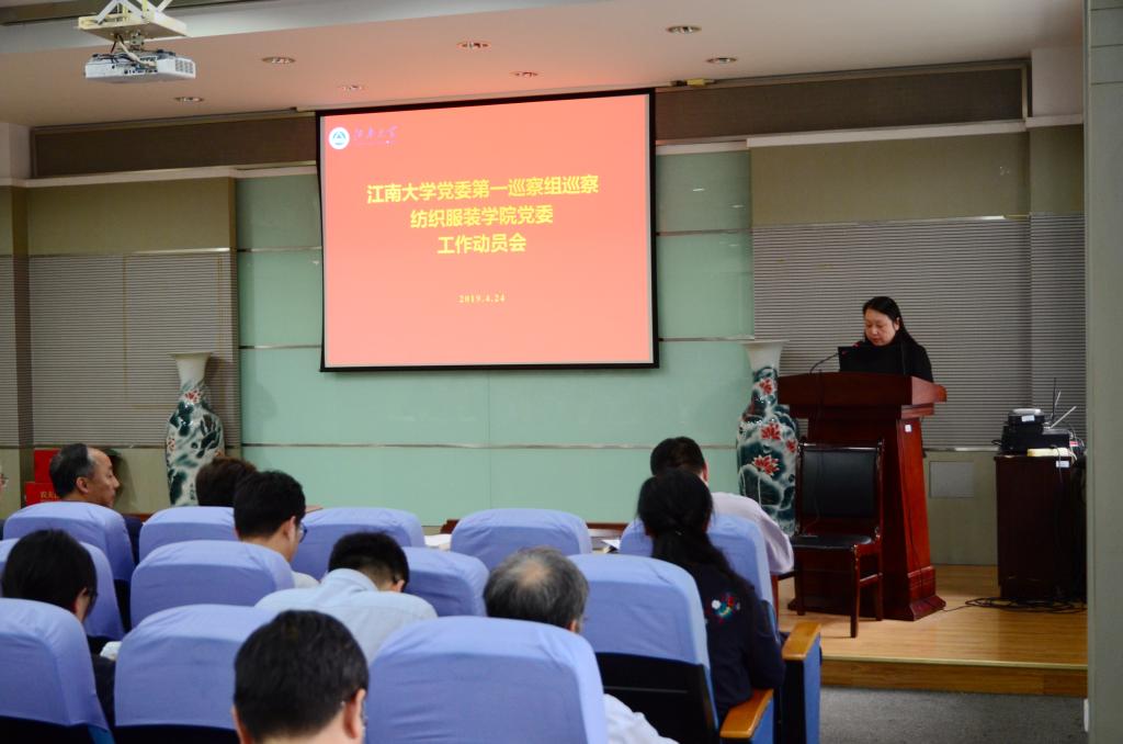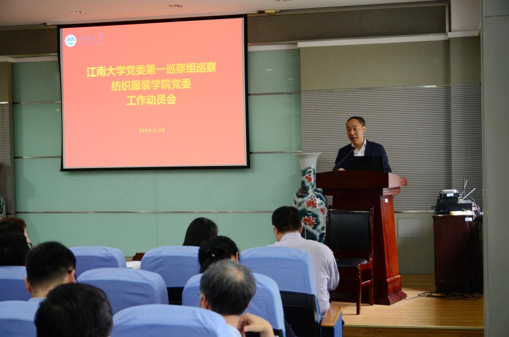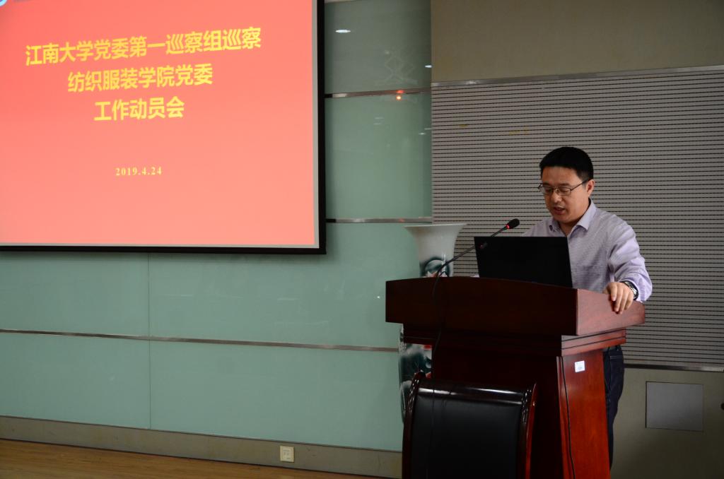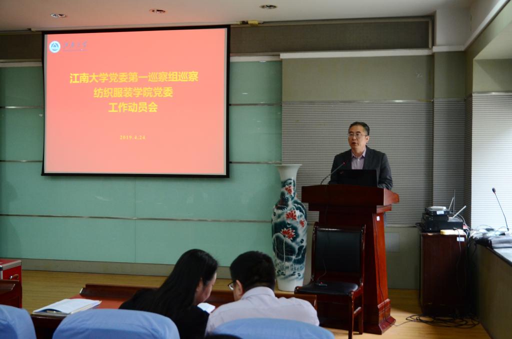 4月24日下午3:30,纺织服装学院在A103召开巡察工作动员会,校党委委员、校党委巡察工作领导小组成员、党委办公室主任、党委统战部部长兼保密办公室主任朱飞同志,江南大学党委第一巡察组组长校党委委员、校长办公室主任张光生同志,巡察组成员校纪委委员、资产经营管理公司党总支书记陈敏娟同志,校纪委委员、机关党委书记周建中同志、校团委书记王维同志,医学院党委秘书兼人事秘书包羽同志,纺织服装学院党政班子全体成员出席了会议,纺织服装学院共131名教职员工参加了会议。动员大会由纺织服装学院院长付少海主持。