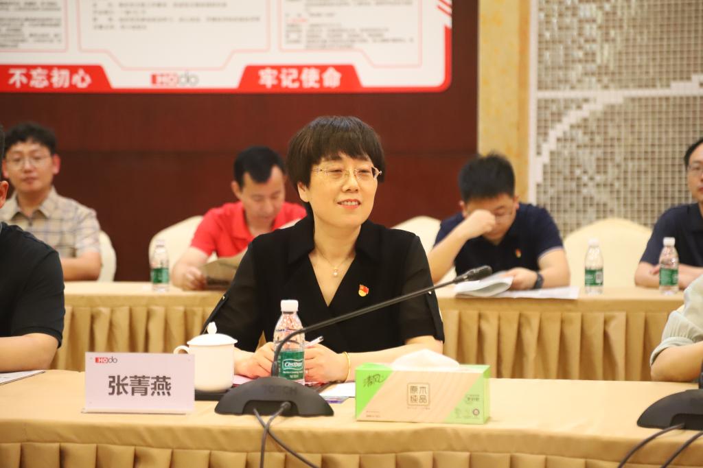 在座谈会上,张菁燕对红豆集团党建带工建促产改一体化推进的“红豆经验”给予极大赞赏。她简要介绍了纺织科学与工程学院基本情况和党建工作特色,以及此次党日活动的目的意义。她提到,学院和集团一方作为纺织的头部学院,一方作为纺织的龙头企业,期待以此次交流作为新的合作起点,在拓展校企合作宽度、提升人才培养效度、加大科研攻关力度等方面强强联合,共织锦绣篇章。