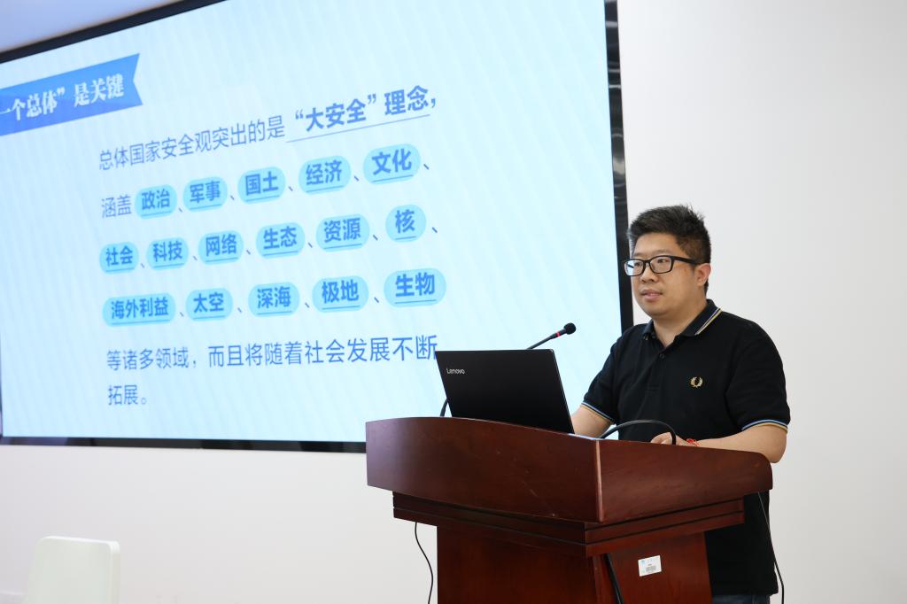 副院长张典堂首先以《全面落实总体国家安全观筑牢学院高质量发展基石》作教职工政治理论领学。他介绍了总体国家安全观“一个总体”“十个坚持”的主要内涵和总体要求。传达了学校安全生产工作会议精神,就《高等学校实验室安全分级分类管理办法(试行)》作了详细解读,就近年来高校实验室安全事故进行了通报,并结合上级有关文件要求,就实验室安全规范作了说明。他要求各研究团队站在总体国家安全观的高度,充分重视并坚决保障实验室安全。随后,各研究团队、教学实验室负责人与学院党委书记张菁燕、院长付少海签订2024年《实验室安全责任书》。