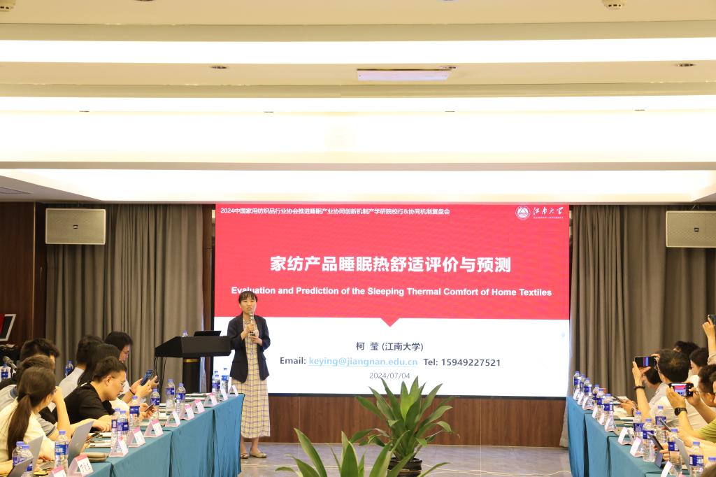 张菁燕在致辞中感谢了中国家用纺织品行业协会及各位企业家长期以来对学院发展的关心和支持。她提到,当前各领域以及消费群体对“大健康”越来越关注,健康睡眠产业创新机制顺应了时代趋势,抓住了产业热点。她表示,纺织科学与工程学院将充分发挥人才优势、创新优势,与行业协会、重点企业等优势互补,共同赋能智慧家纺创新发展。