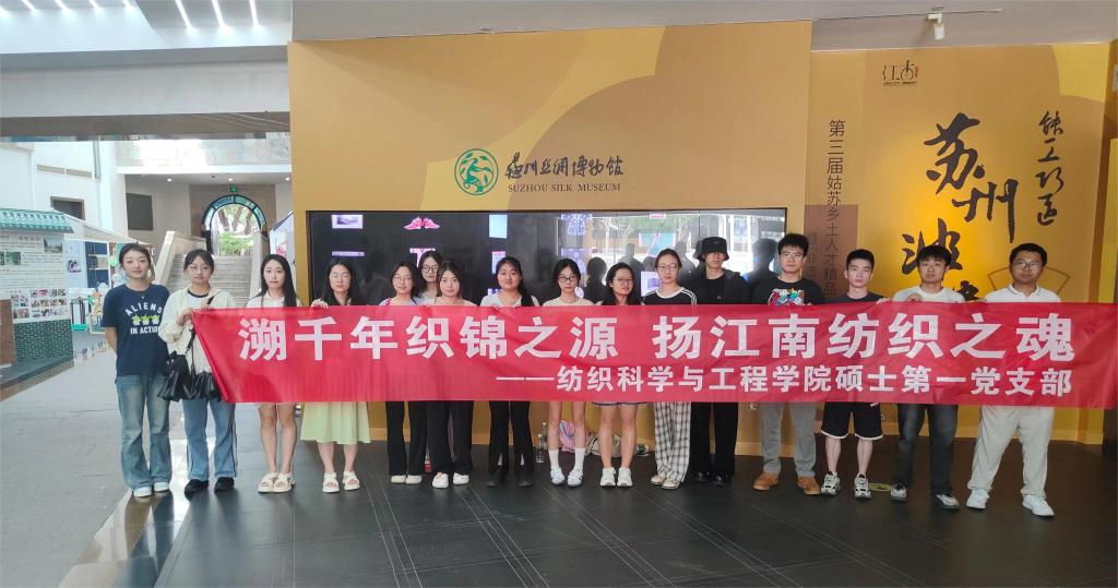 7月18日,纺织科学与工程学院硕士第一党支部前往苏州丝绸博物馆,开展“溯千年织锦之源 扬江南纺织之魂”主题党日活动。学院研究生辅导员伍胤鸿和党员代表参加本次寻访实践。