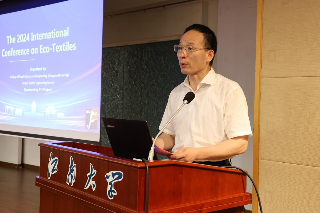 7月27—28日,2024年生态纺织国际会议(The 2024 International Conference on Eco-Textiles)在江南大学成功举办。会议由江南大学主办,江南大学纺织科学与工程学院、江苏省国际科技交流与合作中心、江苏省纺织工程学会和无锡市纺织工程学会联合承办,教育部纺织生态加工关键技术111创新引智基地协办。江南大学党委常委、副校长堵国成,江苏省纺织工程学会理事长周洪溶、秘书长王志杰,无锡市纺织工程学会会长王鸿博,江南大学纺织科学与工程学院党委书记张菁燕、院长付少海,以及来自9个国家16名专家学者和国内外纺织院校、企业150余名代表出席了开幕式并参加学术交流。会议开幕式由江苏省国际化品牌专业(纺织工程)负责人魏取福教授主持。