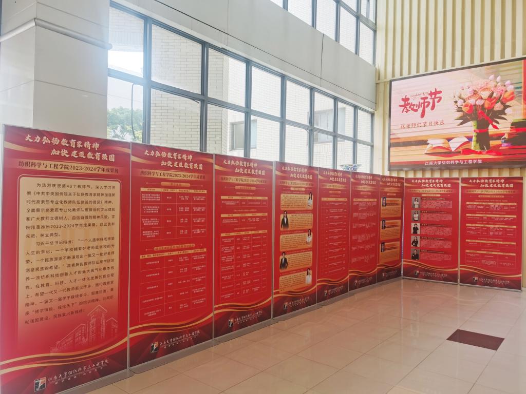 热烈庆祝第40个教师节,深入学习贯彻《中共中央 国务院关于弘扬教育家精神加强新时代高素质专业化教师队伍建设的意见》精神,围绕“大力弘扬教育家精神,加快建设教育强国”主题,江南大学纺织科学与工程学院分工会与办公室、分团委、学生会联合开展了一系列宣传庆祝教师节活动。