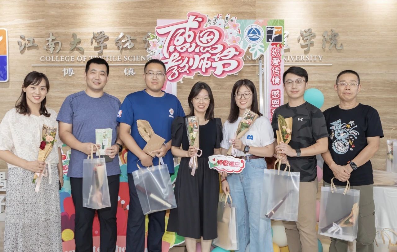 高素质的教师队伍是学院培养一流纺织科技创新人才的最大底气和根本依靠。学院分工会、办公室、分团委和学生会等共同组织开展丰富多彩的教师节庆祝活动,让老师们在简朴而隆重的氛围中度过教师节。在教育、科技、人才一体化发展的新征程上,一代又一代教师必将薪火传承、践行教育家精神,一届又一届学子也将接续奋斗、挺膺担当,秉承“博学慎独、经纶天下”的院训精神,共同织就强国建设、民族复兴新锦绣。