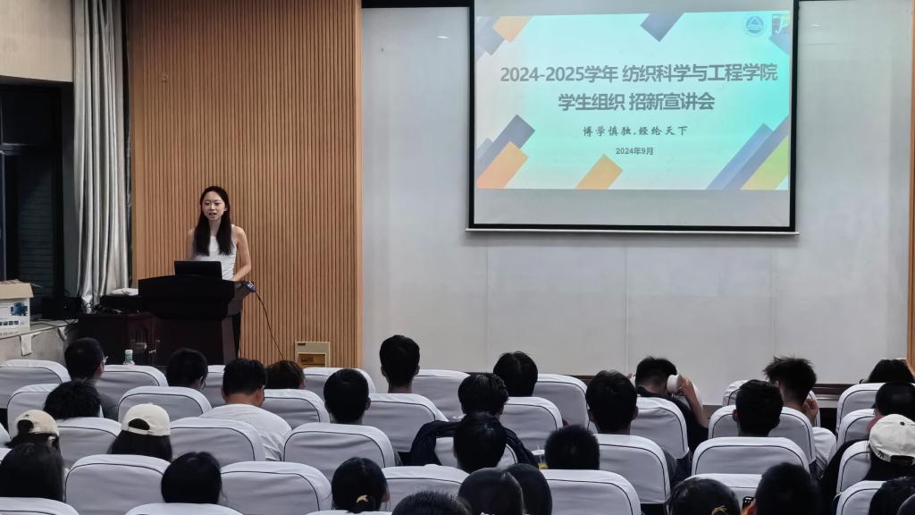 9月11日晚,学院学生组织招新宣讲会在学院A103和B104正式开始。主持人张宁恬、宋雨虹从学院学生组织概况及架构两个方面进行简要阐述。各部门宣讲人依次从部门简介、成员介绍、部员收获、招新要求等多个方面展开宣讲,向新生们展示各个部门的独特魅力,展现其中蕴含的无限可能。宣讲后,各部门召开招新初试,纺织学子们彼此间建立起一道道无形的桥梁,共同在纺院大家庭中找寻温暖、结识伙伴、收获成长。