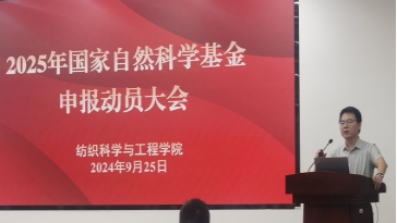 2024年9月25日下午,纺织科学与工程学院2025年国家自然科学基金项目申报动员大会在A103报告厅召开。纺织科学与工程学院院长付少海、科学技术研究院副院长柏玉香、江南大学附属医院科技处处长袁凤来、纺织科学与工程学院副院长马丕波,学院拟申报2025年国家自然科学基金项目的老师参加会议。会议由马丕波主持。