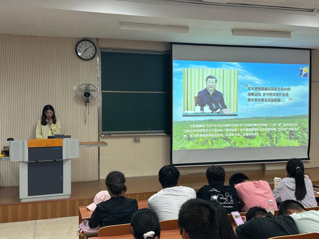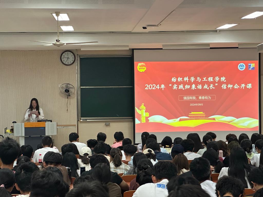 为深入学习贯彻党的二十大精神,进一步落实习近平总书记关于青年工作的重要思想,9月29日晚,纺织科学与工程学院于一教1A410举办2024年暑期“实践归来话成长”信仰公开课。学院学工办主任兼分团委书记任学敏、2024级本科生辅导员孙慧、2024年暑期社会实践院级重点团队代表,2024级全体本科生参与本次活动,会议由学生会团委通讯社党婧琳主持。