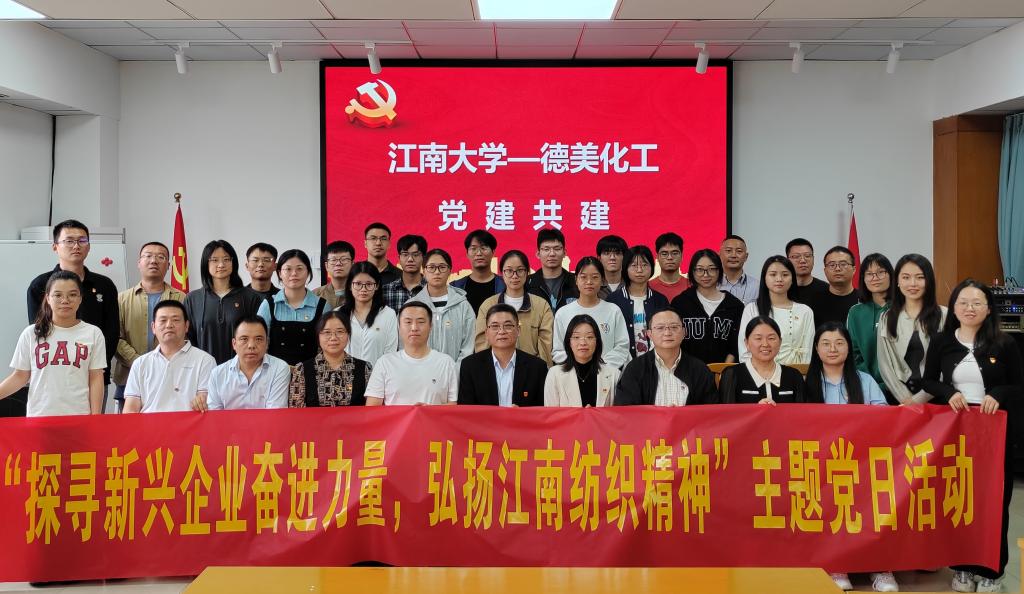 10月12日下午,在庆祝中华人民共和国成立75周年之际,纺织科学与工程学院轻化系教师党支部携手硕士第三党支部,共赴无锡市德美化工技术有限公司,以“探寻新兴企业奋进力量,弘扬江南纺织精神”为主题,开展了一系列党组织联建、产学研对接及红色教育活动,旨在深入了解新兴企业的成长进程、企业文化与创新精神,以实际行动探寻和弘扬江南纺织精神,以理论和实践学习相结合的方式,增强党员们对纺织行业的使命意识、责任意识;通过党建引领校企共建共享,建立双向互动机制,搭建多层次合作平台,在共建中共同进步,共同发展。纺织科学与工程学院党委副书记杨莉勤出席本次活动。