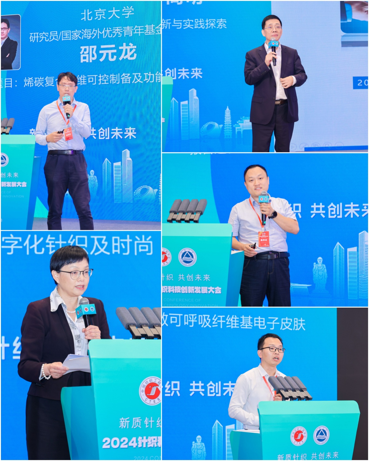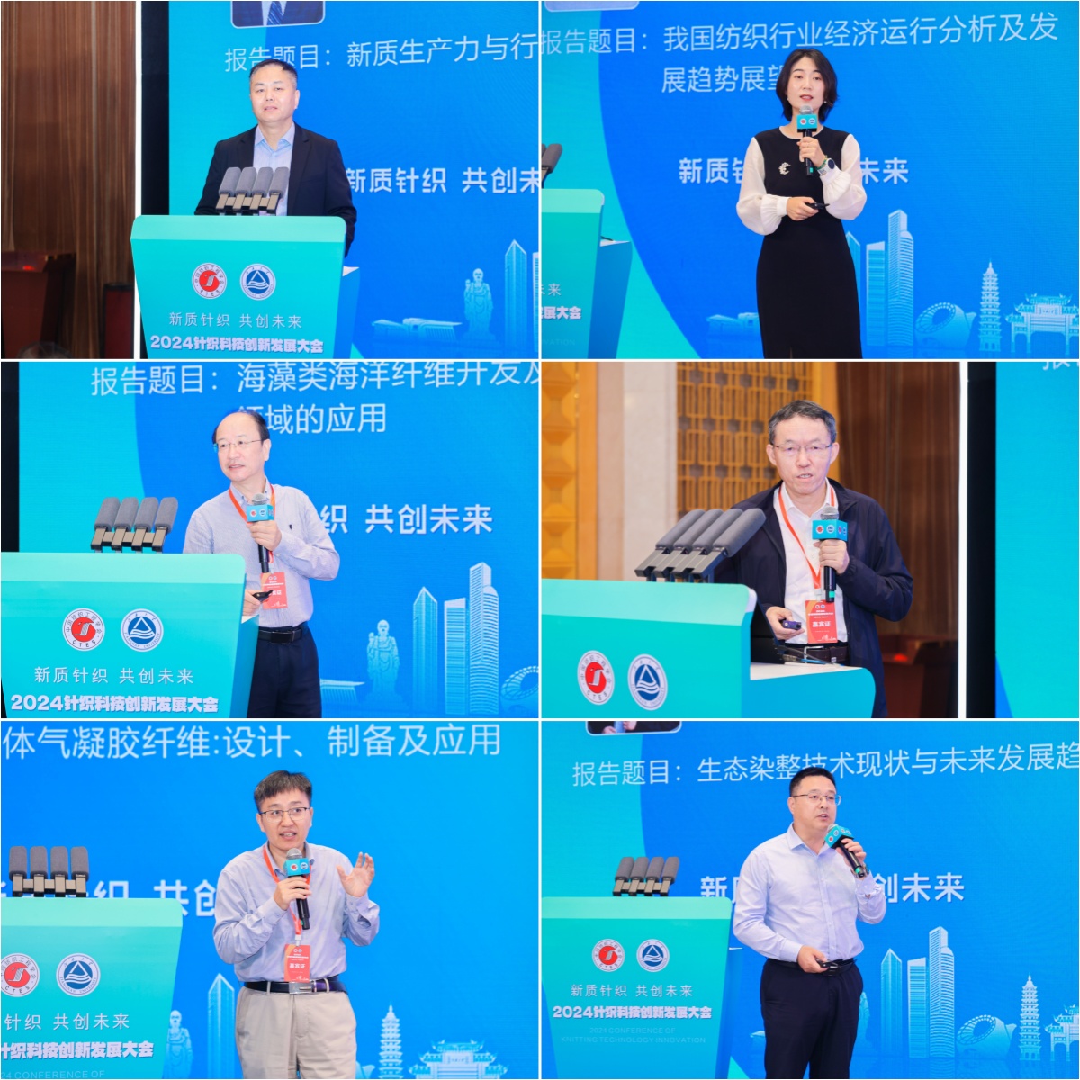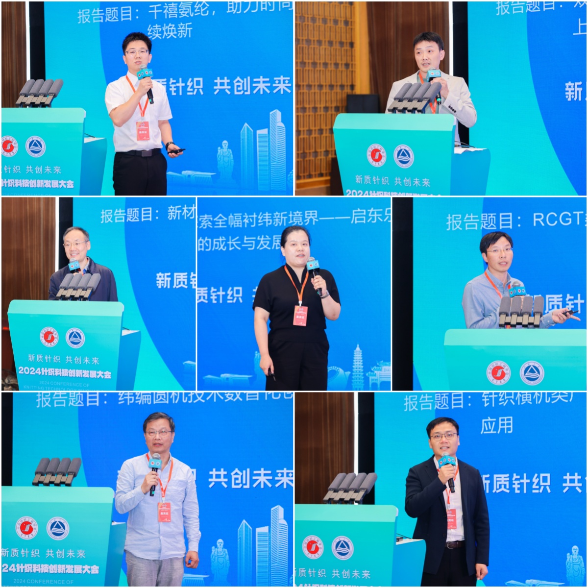 在报告交流环节,中国纺织工程学会理事长伏广伟,中国纺联产业部处长张倩,青岛大学教授、国家自然科学基金杰出青年基金获得者夏延致,武汉纺织大学教授、俄罗斯自然科学院院士梅顺齐,中科院苏州纳米所教授、科技领军人才张学同,江南大学纺织科学与工程学院院长、科技领军人才付少海,北京大学研究员、国家海外优秀青年基金获得者邵元龙,美国路易斯安那州立大学教授刘传兰,江南大学教授、中国纺织工程学会针织专业委员会主任蒋高明,东华大学教授、青年拔尖人才李召岭等分别以《新质生产力与高质量发展的几点思考》《我国纺织行业经济运行分析及发展趋势展望》《海藻类海洋纤维开发及在针织领域的应用》《新质生产力引领纺织智能制造高质量发展的体会》《胶体气凝胶纤维:设计、制备及应用》《纺织品生态染整技术研究现状与发展趋势》《烯碳增强纤维可控制备及功能化应用》《Machine Knitting for Fashion –A Focus on 3D/Whole Garment Knitting》《针织技术创新与实践探索》《高灵敏可呼吸纤维基电子皮肤》为题作行业发展思考报告和前沿领域研究分享。华峰化学股份有限公司,福建佶龙机械科技股份有限公司,安徽吴方机电科技有限公司,启东乐欣纺织科技有限公司,无锡市兴盛新材料科技有限公司,圣东尼针织机器有限公司,江苏金龙科技股份有限公司代表分别以《千禧氨纶,助力时尚产业可持续焕新》《双针床贾卡经编机在鞋面及服装上的应用和趋势》《新材料在织针上的应用及发展》《探索全幅衬纬新境界——启东乐欣的成长与发展》《RCGT柔软超高弹纤维》《纬编圆机技术数智化创新及其产品》《针织横机类产品发展趋势及创新应用》等为题,分享了公司的创新产品及应用案例。