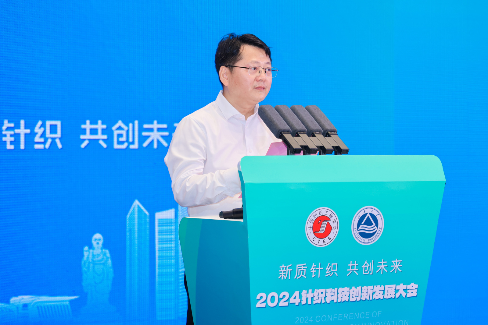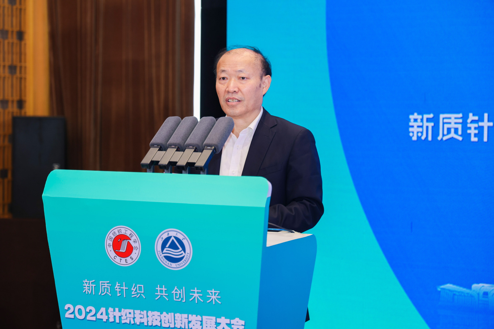 顾正彪在致辞中首先表达了对支持我校纺织学科发展的各界代表的诚挚感谢,随后介绍了江南大学的办学历程和成效。他提到,江南大学以“彰显轻工特色,服务国计民生,创新培养模式,造就行业中坚”为办学理念,已逐步成为一所规模结构合理,国内有影响力、国际有知名度的特色鲜明的高水平大学。纺织科学与工程学院以及针织技术教育部工程研究中心充分发挥学科和平台优势,全力推动行业创新化、智能化和可持续化发展。本次大会的召开在当前全球科技创新加速发展的背景下,探讨针织行业如何通过创新实现高质量发展,必将对新形势下针织行业如何发展起到积极的推动作用。