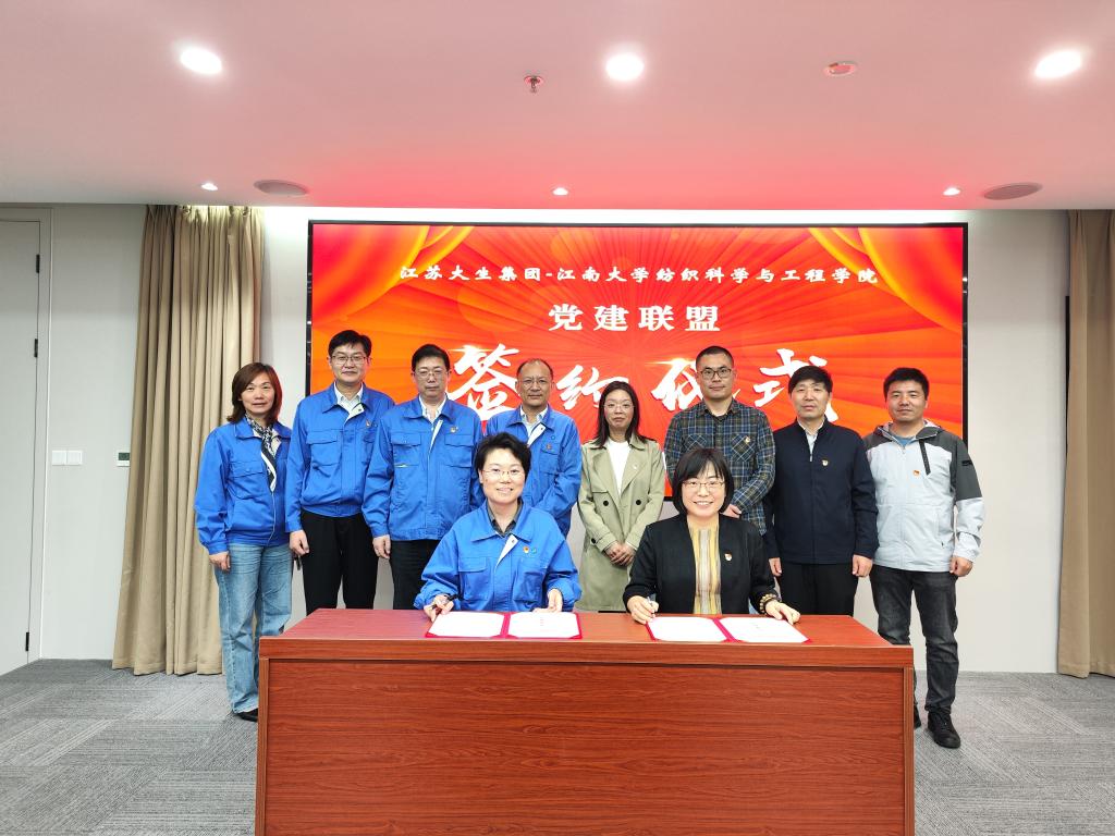 随后,双方举行了江苏大生集团-江南大学纺织科学与工程学院党建联盟签约仪式。纺织系教师党支部书记俞科静、大生集团有限公司部室第三党支部书记李兰女分别代表两个支部签约,今后,两支部将深入实施“联学、联建、联育、联创”四联党建工作机制,在思想引领、组织机制、人才培养、创优创新等领域交流合作,有效促进双方深度融合发展。