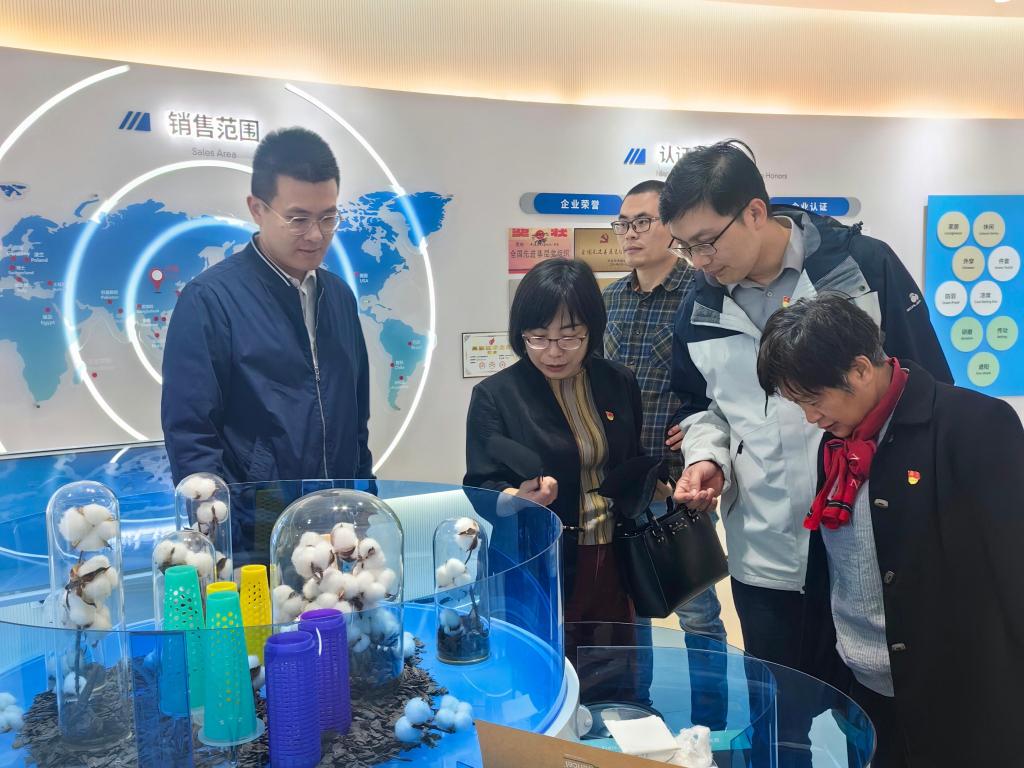 10月19日,纺织科学与工程学院党委副书记、副院长杨莉勤,及纺织系教师党支部一行赴江苏大生集团有限公司开展“探寻江南纺织精神”主题党日活动,开展了一系列党组织联建、产学研对接及红色教育活动,旨在进一步挖掘江南纺织精神,促进校地产学研深度融合,加速科技创新成果转化,并强化校企联合人才培养机制,共同探索党建引领下的高质量发展新路径。大生集团党委书记、董事长漆颖斌,党委副书记、总经理包卫东,党委委员、副总经理赵志华,党委委员、副总经理陈建,生产技术部部长王小舒,生产技术部副部长李兰女,党政办公室主任潘宇等参加了座谈交流。