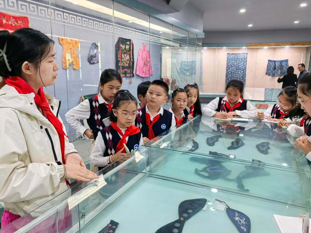 交流前,天一三小的学生代表还参观了纺织科学与工程学院“民间服饰传习馆”。参观过程中学生们表现出浓厚兴趣,积极踊跃地提出问题并细致记录所见所学。