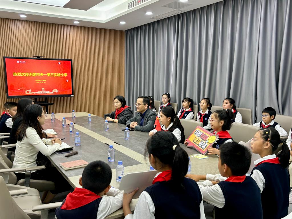 11月4日,无锡市天一第三实验小学尤立忠副校长一行来院参观。纺织科学与工程学院党委副书记兼副院长杨莉勤、织光者协会指导老师伏曦参加交流活动。