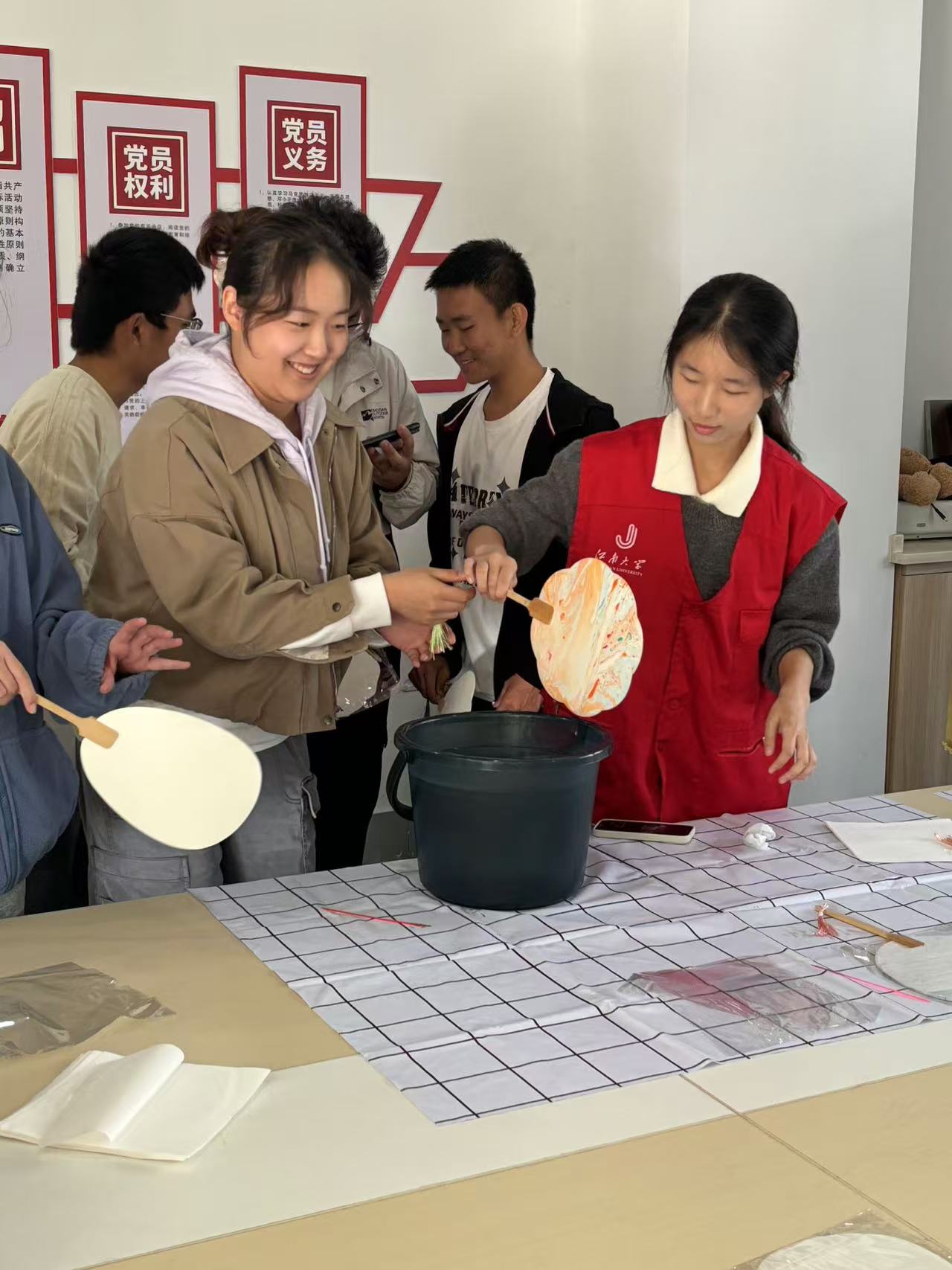 近日,纺织科学与工程学院青年志愿者协会“挥洒色彩,扇出独特”DIY漆扇活动在榴园党建活动室成功举行。此次DIY漆扇活动独具特色,亮点纷呈,活动现场热闹非凡。