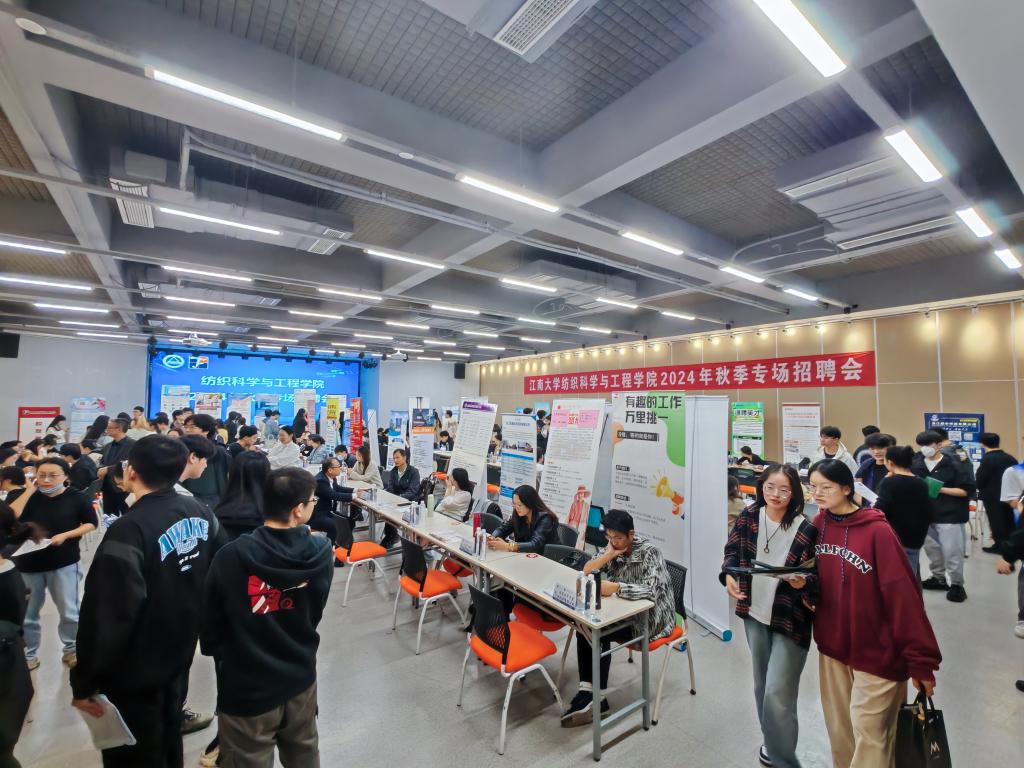 为进一步实现人才供需精准对接,搭建用人单位和毕业生双向选择的交流平台,充分发挥校园招聘主渠道作用,全力促进毕业生更高质量更加充分就业,11月15日,纺织科学与工程学院在北区大学生活动中心F105招聘大厅举办2024年秋季专场招聘会。