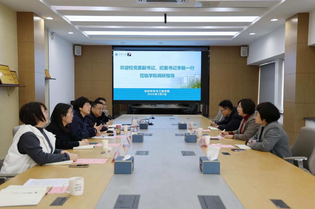 李旸在讲话中指出,纺织科学与工程学院发展定位清晰、目标明确,班子成员以务实的作风和扎实的举措带领学院取得了较好成绩。她对班子成员及学院今后发展提出四点希望:一要压紧压实全面从严治党政治责任。要巩固深化党纪学习教育成果,打通宣传教育“最后一公里”,不断营造遵规守纪、干事创业的良好政治生态。二要聚焦巡视巡察整改,履行好“一岗双责”。要带头讲规矩守纪律,提升制度执行。要以案为鉴加强警示教育,围绕保密工作、师德师风等重点领域做好风险点梳理,做到举一反三。要关注解决师生急难愁盼问题,真正把师生利益放在心上、做到实处。三要深入学习贯彻学校第五次党代会精神,科学做好学院中长期发展规划。要面向国家重大需求做好顶层设计和前瞻布局,凝心聚力推动专业建设、平台重组、实验室优化管理等重点任务见行见效。四要支持配合纪委履职尽责,主动接受监督。要引导师生员工深刻认识严管厚爱、抓早抓小的重要意义,将苗头性、倾向性问题化解在萌芽状态。加强与学校纪检监察机构的日常沟通联系,合力破解难题、推动更高质量发展。