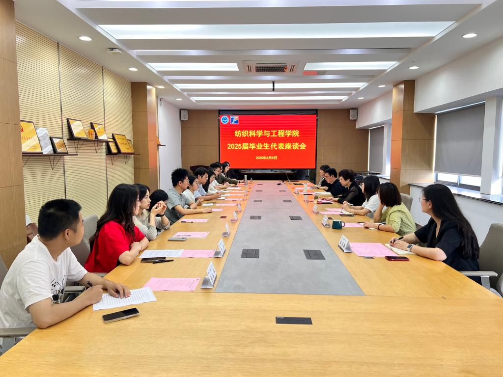 为进一步提升人才培养质量,深入了解毕业生学习生活情况、听取毕业生对学院发展的意见建议,纺织科学与工程学院于2025年6月5日召开2025届毕业生代表座谈会。学院党委书记张菁燕,党委副书记、副院长杨莉勤,副院长马丕波、张丽平,纺织工程系副主任董智佳,学工办主任、2025届研究生辅导员任学敏,2025届本科生辅导员张旭以及13名本、硕、博毕业班学生代表参加了本次座谈会。座谈会由张旭主持。