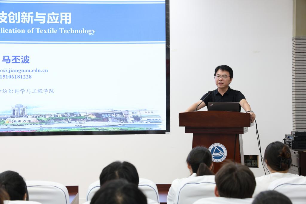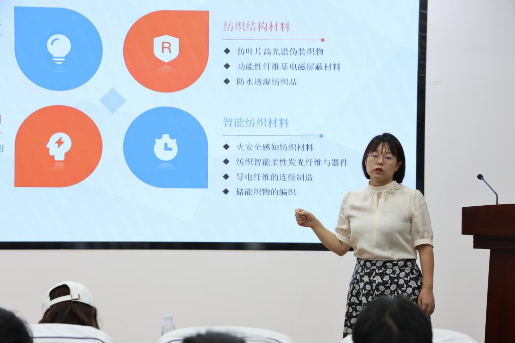 12日上午,纺织科学与工程学院副院长马丕波教授为营员们带来题为《纺织科技创新与应用》的学术报告,全面解读了包括轴向结构织物、网状结构织物、间隔结构织物等针织技术,系统阐述了它们的组织结构特点与核心应用领域。下午,纺织科学与工程学院副院长张丽平教授向大家介绍了特种防护纺织材料团队以及科技成果,并作题为《多波段伪装纺织材料的制备关键技术》的学术报告,深入为同学们解析伪装材料的研究思路与关键技术要点,激发了同学们的创新思维活力。老师们的报告精彩纷呈,围绕纺织学科前沿方向与研究热点,为营员们呈现了一场思想盛宴。会上,同学们围绕学习中的疑难向老师们提问,老师们一一耐心解答,现场互动频繁,气氛热烈。