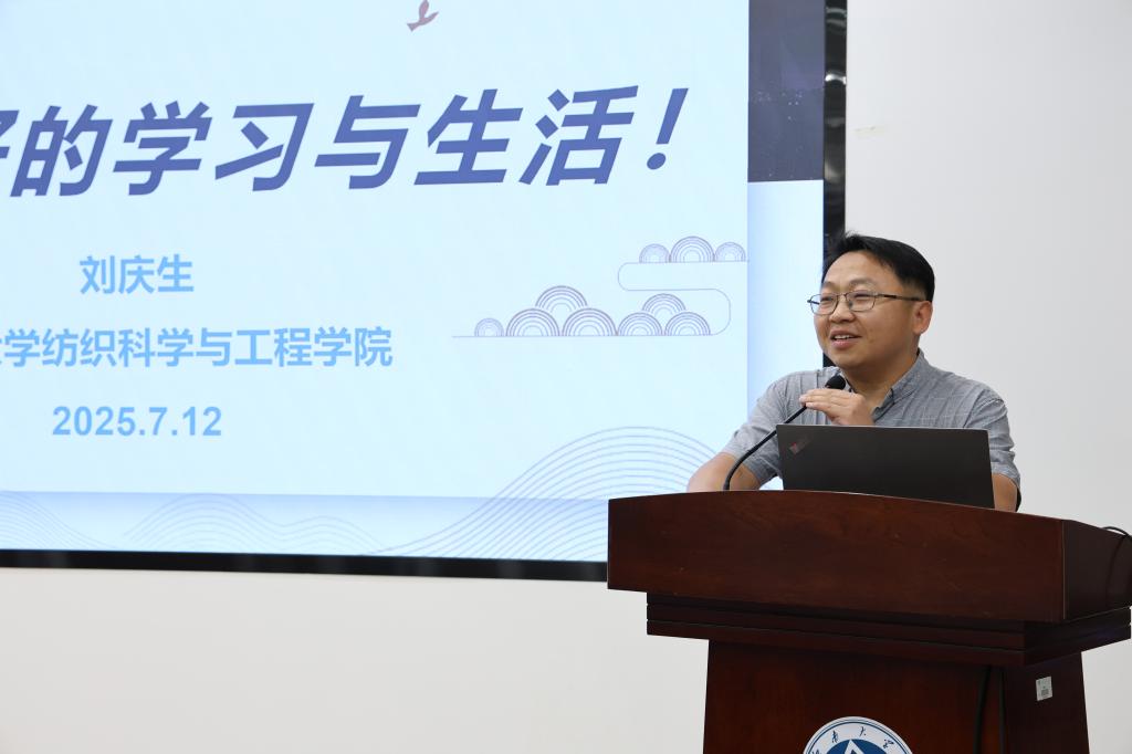 12日上午,开营仪式在纺院A103顺利举行,纺织科学与工程学院副院长刘庆生为夏令营开营仪式致辞。他首先对同学们的到来表示热烈欢迎,并以“江南,更好的学习与生活”为主题,向大家介绍了宜学、宜业、宜居的无锡以及学校的特色与蓬勃发展,为营员们重点讲解了将江南大学作为未来攻读硕士、博士首选的六个理由:深厚的历史和底蕴,强大的师资队伍、与时俱进的学科建设、完善的人才培养体系、杰出科学研究水平、广泛的学术交流。同时,他鼓励营员们把握机遇、拓宽视野、激发潜能、能够在此开启人生新篇章。