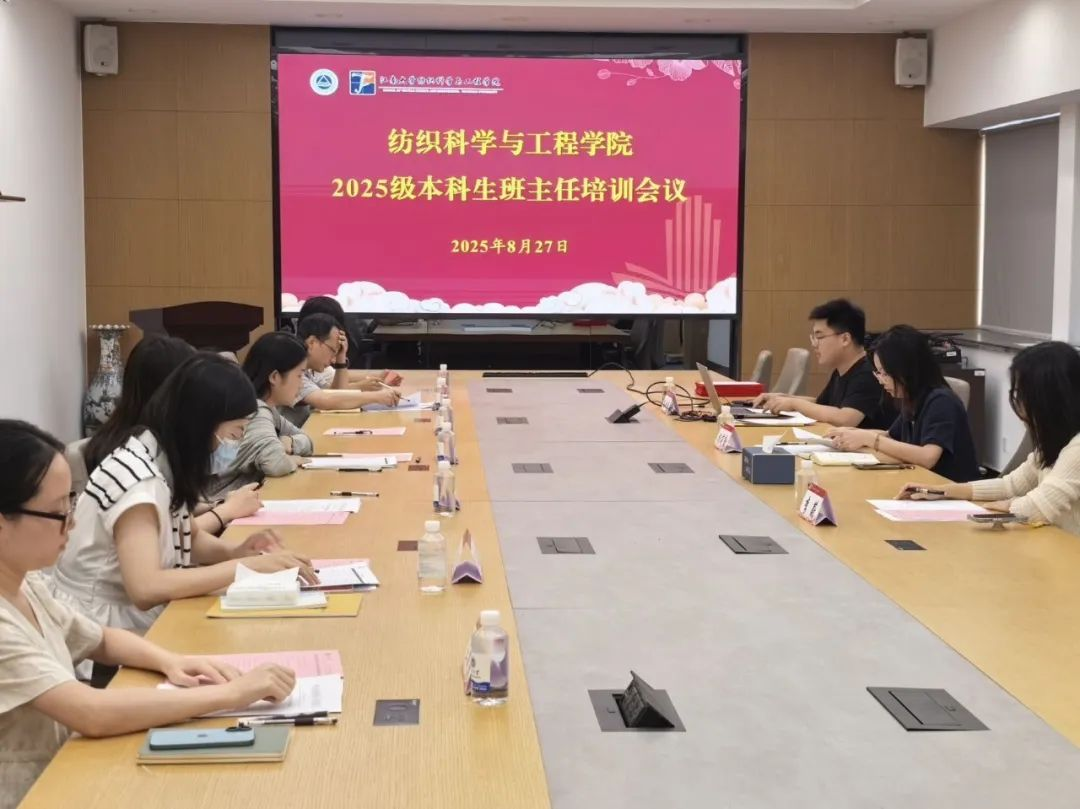 为扎实做好新生入学教育与班级管理工作,8月27日,纺织科学与工程学院召开2025级本科生班主任培训会议。学院党委副书记、副院长杨莉勤,优秀班主任代表、纺织(创新班)2401班班主任李蔚,2025级本科生辅导员孙洲龙,全体2025级本科生班主任及副班主任参加会议。