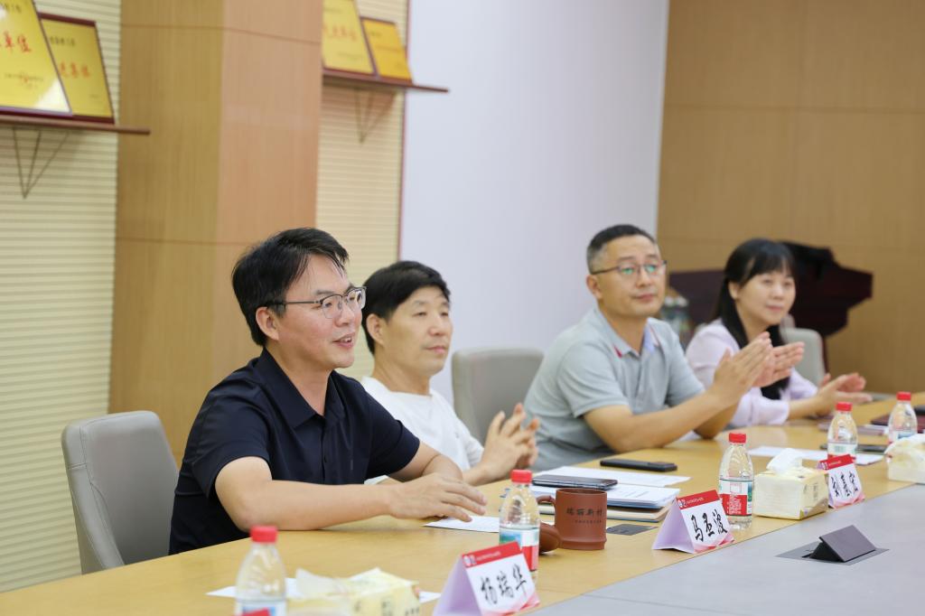 首先,学院副院长马丕波对联发纺织一行的到访表示热烈欢迎。他指出,学院始终坚持科学研究与产业需求紧密结合,致力于解决行业关键共性技术难题。联发纺织作为国内纺织行业的领军企业,拥有强大的生产制造能力,双方合作基础深厚、前景广阔。希望通过此次深度交流,能够进一步找准合作切入点,将学院的科研优势与企业的市场优势紧密结合,共同推动纺织行业向高端化、智能化、绿色化方向发展。