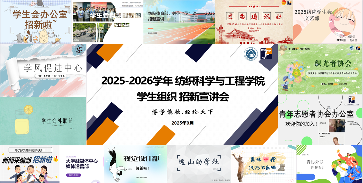 乘风蓄势,聚力前行。为汇聚新鲜血液,共绘发展蓝图,纺织科学与工程学院学生组织于金秋九月相继举办了新学年招新宣讲会与新学期中层工作会议,以热忱服务之心,引领一段崭新的织梦征程。
