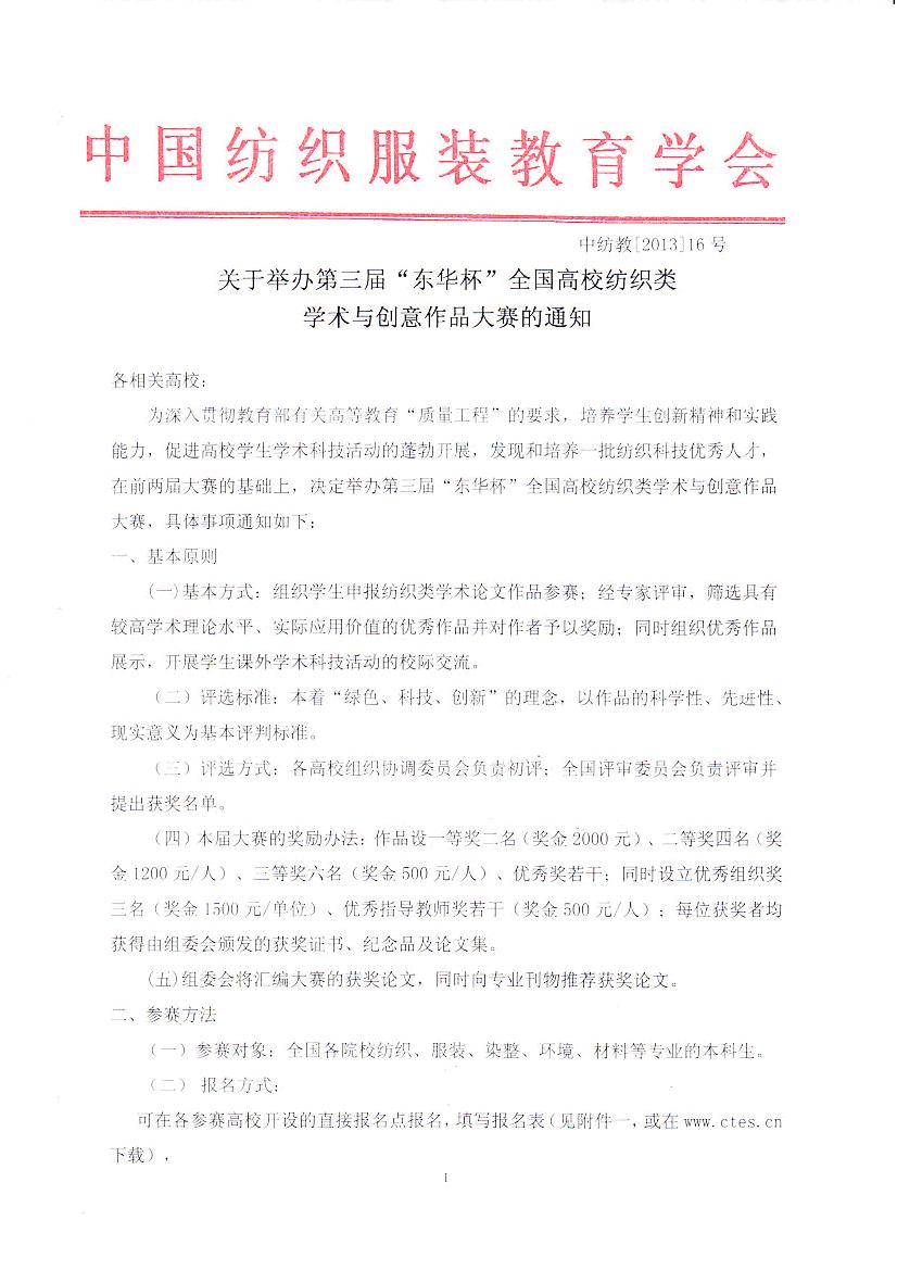 关于举办第三届“东华杯”全国高校纺织类学术与创意作品大赛的通知